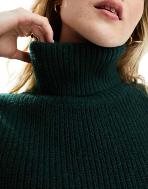 Monki cropped turtleneck knitted jumper in dark green Very well made.