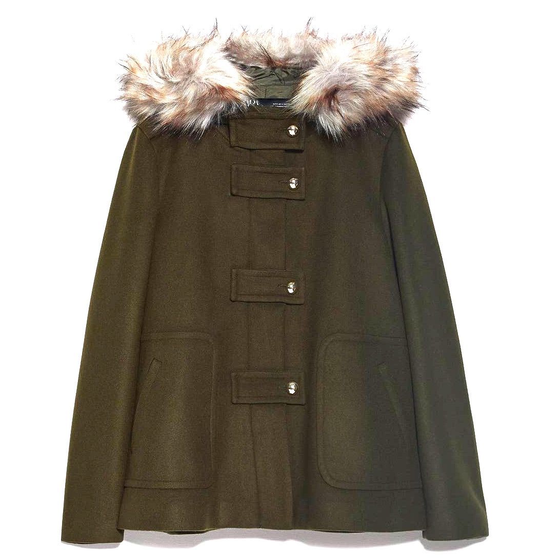 Zara Zara Women s Green Coat with Faux Fur Hood Size S Grailed Very well made.