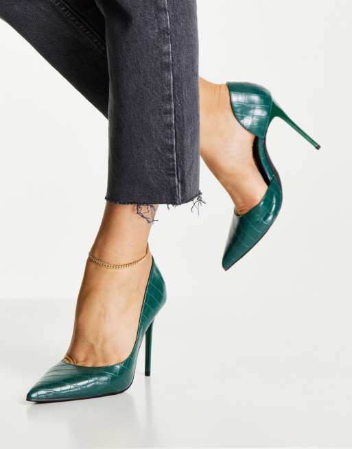 Truffle Collection pointed stiletto heels in green snake Very well made.