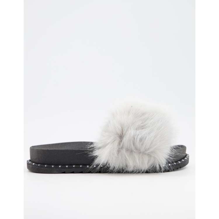 Faux Fur Cross Slider Slippers Truly Neutral Collection Very well made.