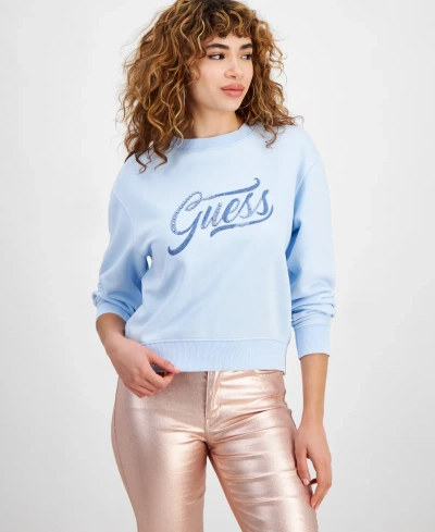 Guess Women s Rhinestone Logo Crewneck Sweatshirt In Acid Whimsical Blue ModeSens Very well made.