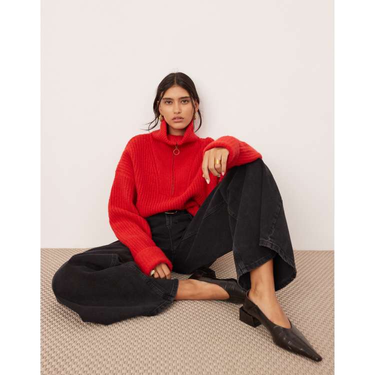 ASOS EDITION rib knit half zip jumper in red ASOS Very well made.