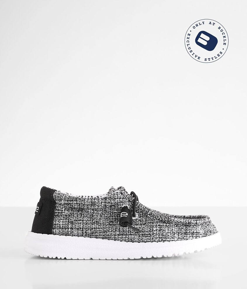 Toddler Youth Hey Dude Wally Shoe Boy s Shoes in Black White Tweed Buckle Very well made.