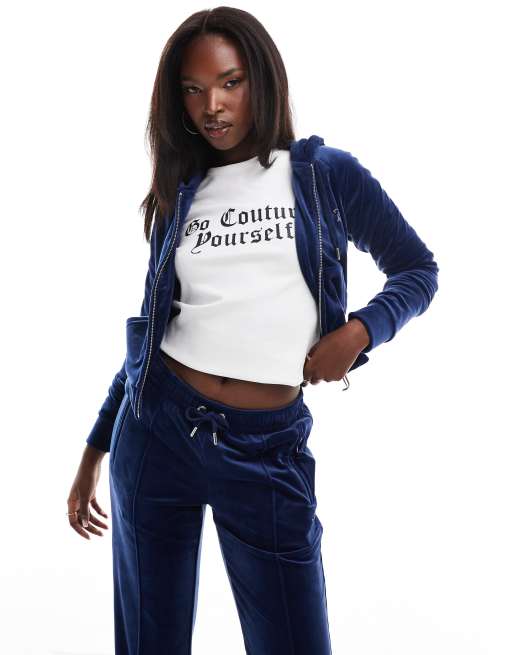 Juicy Couture velour zip through hoodie in dark navy part of a set ASOS Very well made.