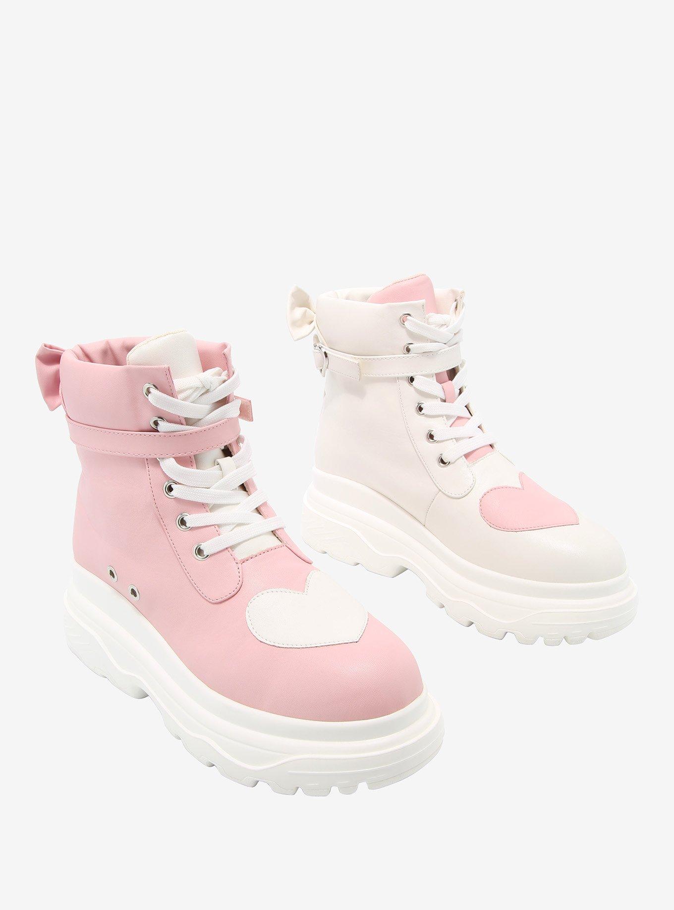 Pink White Mismatch Heart High Top Platform Sneakers Hot Topic Very well made.