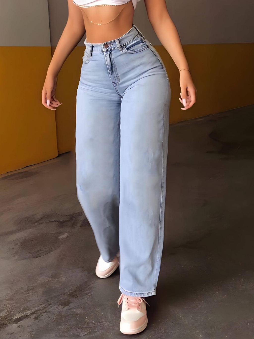 Calca Jeans Feminina Wide Clara Cintura Alta Corte Largo Moderno Very well made.