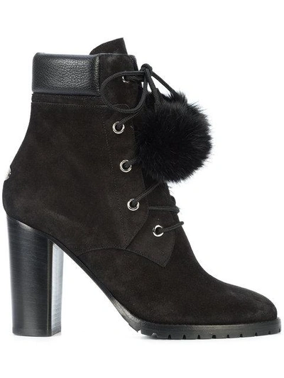 JIMMY CHOO Black Suede Pom Pom Elba Boots VERGLE Very well made.