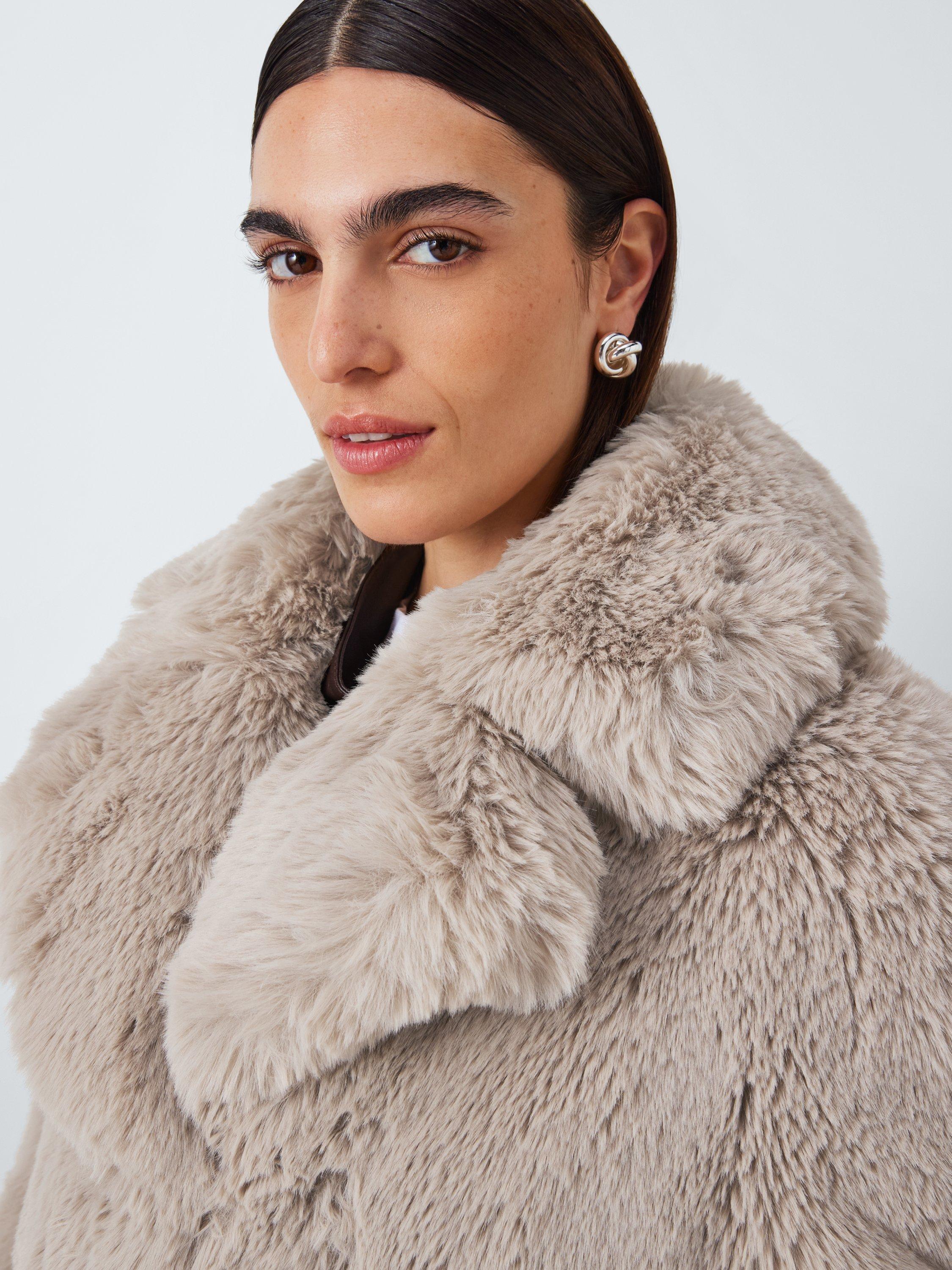 Pure Collection John Lewis Melanie Faux Shearling Coat Soft Taupe Size 14 Very well made.