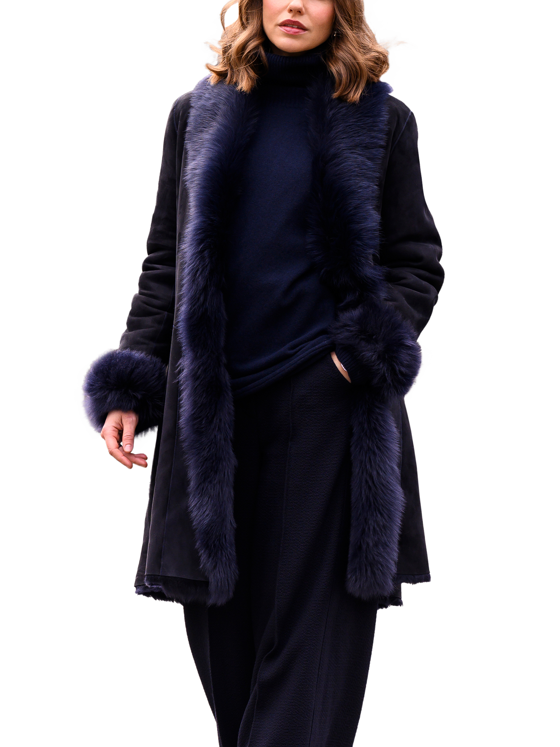 Celtic Co. Toscana Sheepskin Trim 3 4 Coat Dark Navy Very well made.