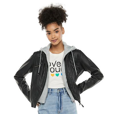 Juniors Jou Jou Faux Leather Jacket with Lightweight Fleece Hood Very well made.