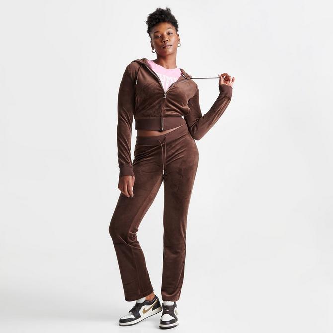 Juicy Couture Women s OG Big Bling Velour Track Pants in Brown Brown Sugar Size XL Polyester Spandex Velour Very well made.