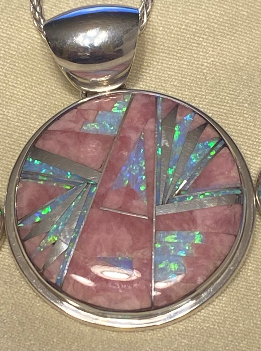 Authentic Native American Bracelet Turquoise and Opal Inlay Sterling Silver by Navajo Kenneth Bitsie Very well made.