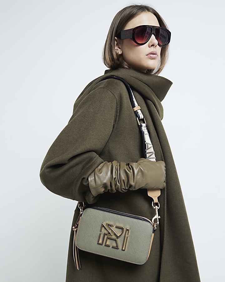 Womens Khaki RI monogram embossed cross body bag Very well made.