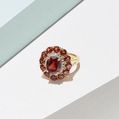 18K Gold Over Silver Genuine Garnet and Diamond Accent Halo Ring Very well made.