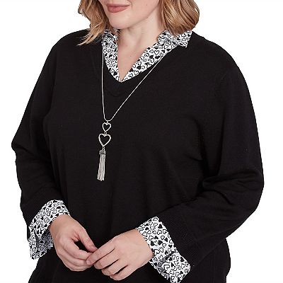 Plus Size Alfred Dunner Heart Woven Trim Two In One Sweater Very well made.