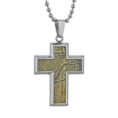 LYNX Stainless Steel Camouflage Cross Pendant Necklace Men Very well made.