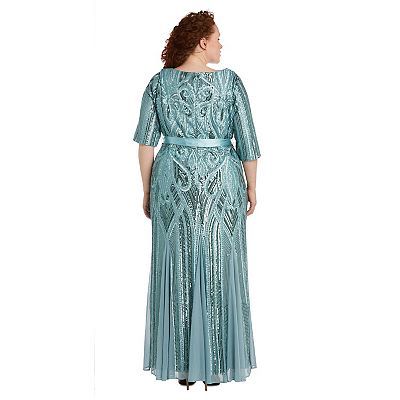 Plus Size R M Richards Sweetheart Neckline Floral Sequin Paneled Maxi Godet Dress Very well made.