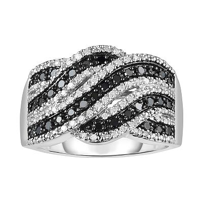 Sterling Silver 1 2 Carat T.W. Black White Diamond Twist Ring Very well made.