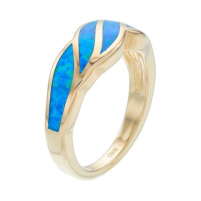 14k Gold Over Silver Lab Created Blue Opal Wave Ring Very well made.