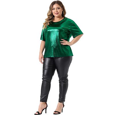 Plus Size Top for Women Metallic Round Neck Short Sleeve T Shirt Party Blouses Tee Tops Very well made.