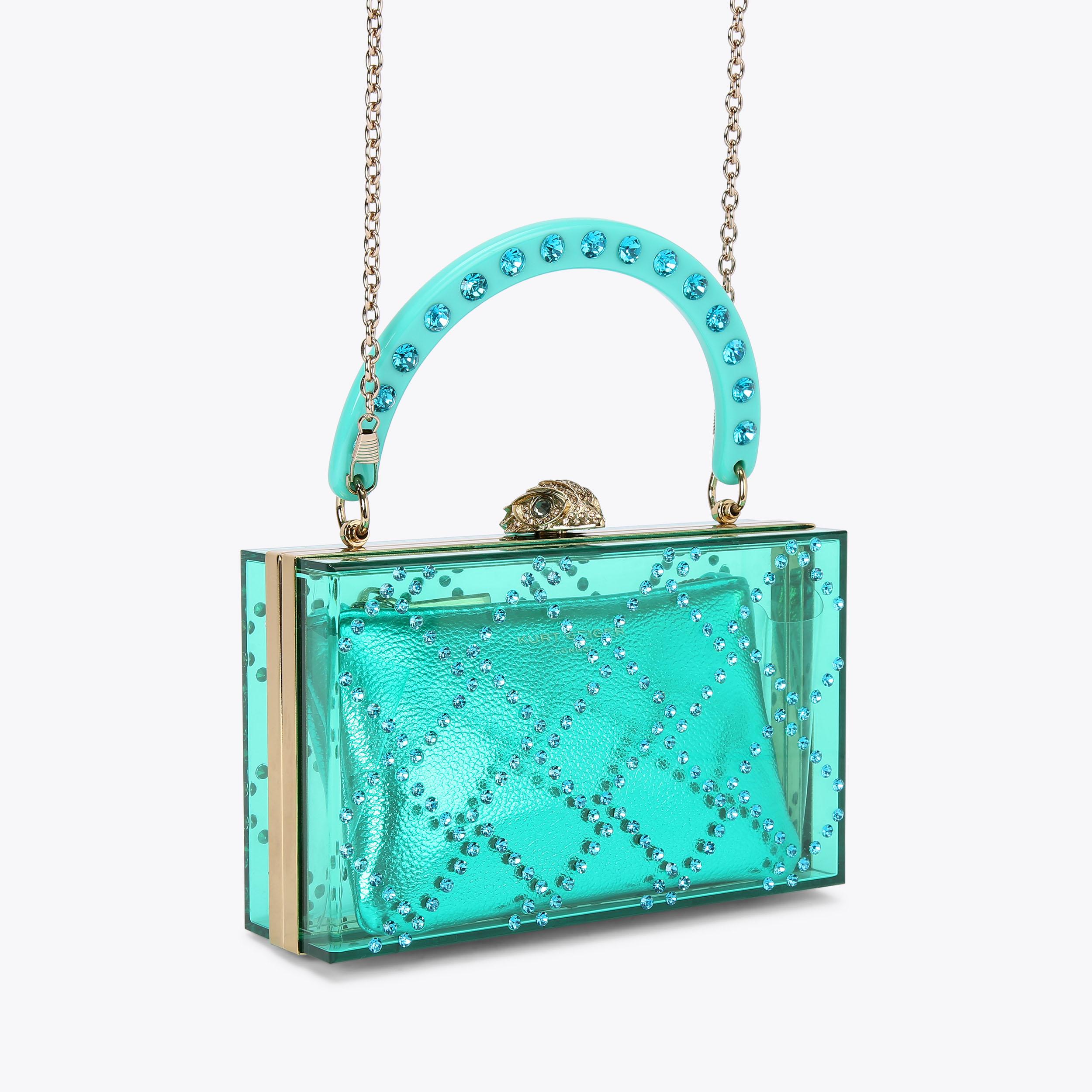 QUILT BOX CLUTCH Green Top Handle Clutch by KURT GEIGER LONDON Very well made.