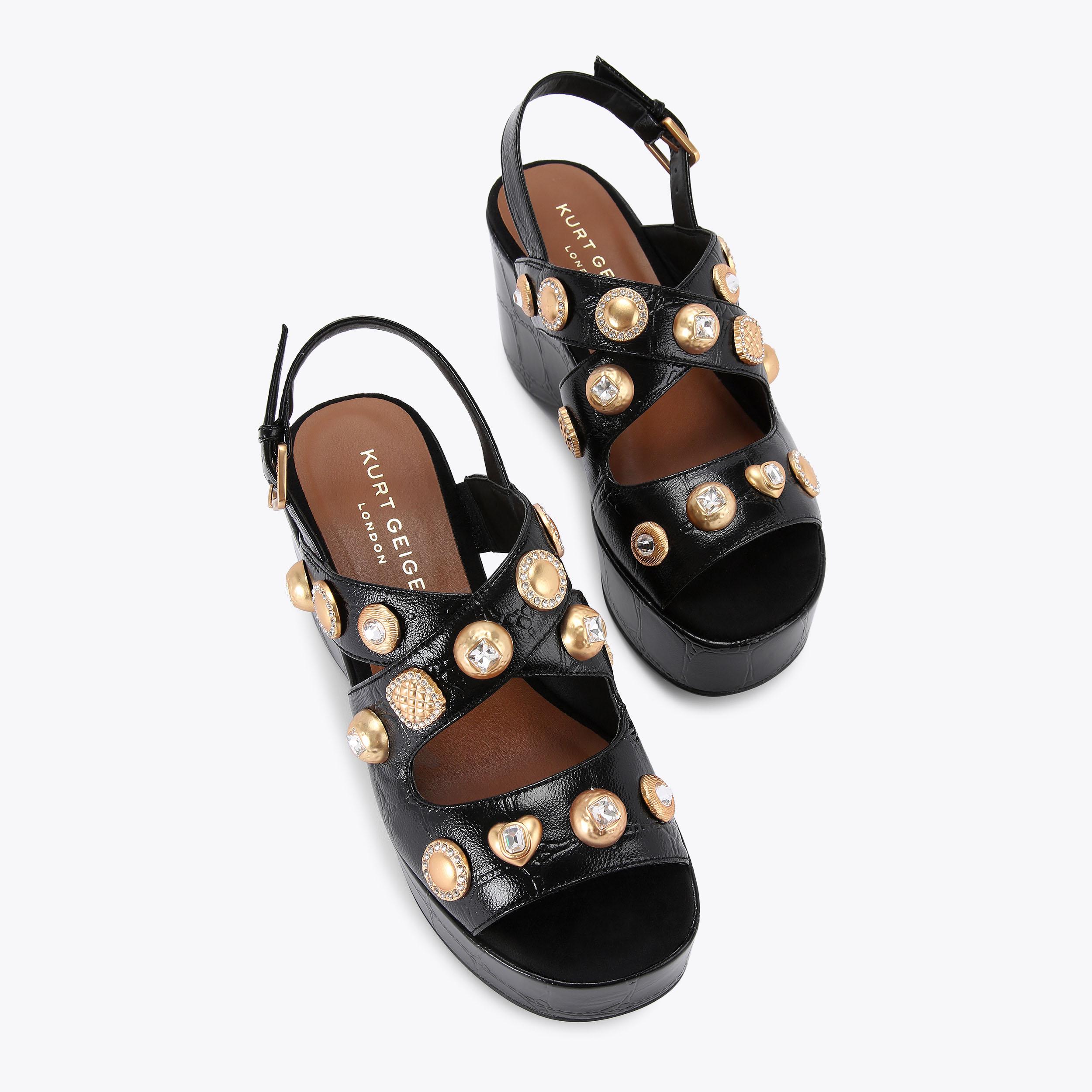 KENSINGTON WEDGE SANDAL Black Patent Wedge Heels by KURT GEIGER LONDON Very well made.
