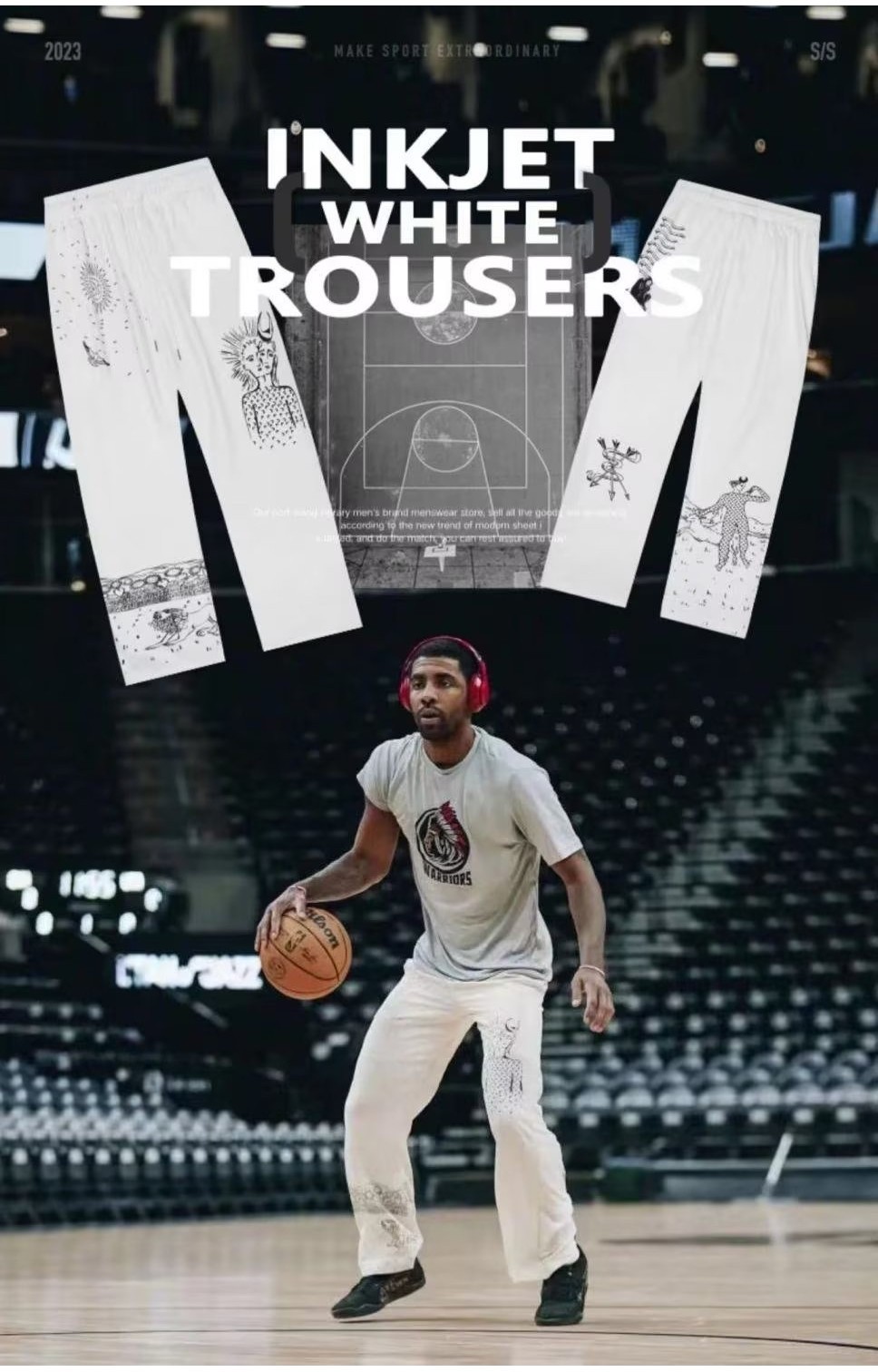 2024 Kyrie Irving Pants Ink Printed Training Basketball Cotton SweatPants American Casual Loose Street Hip Hop Wide Leg Straight Pants Black White Shopee Philippines Very well made.