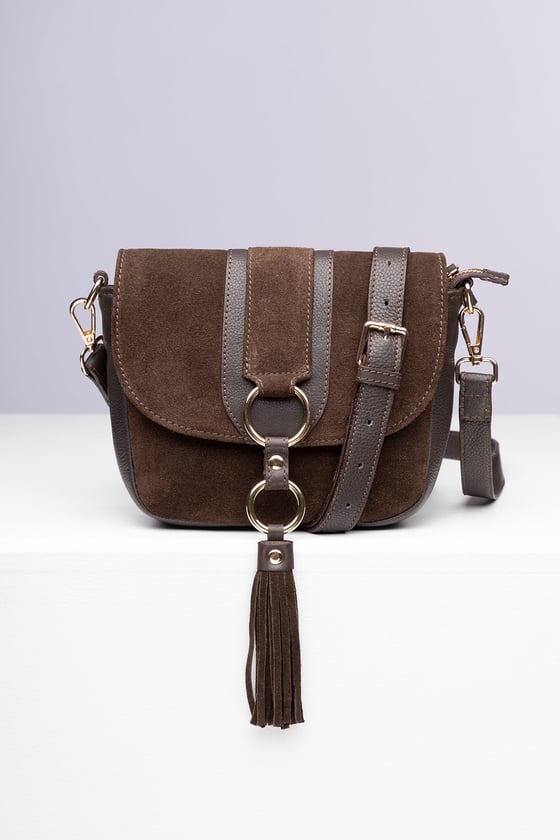 Chocolate Sia Suede Curved Crossbody Bag WHISTLES Whistles ROW Very well made.