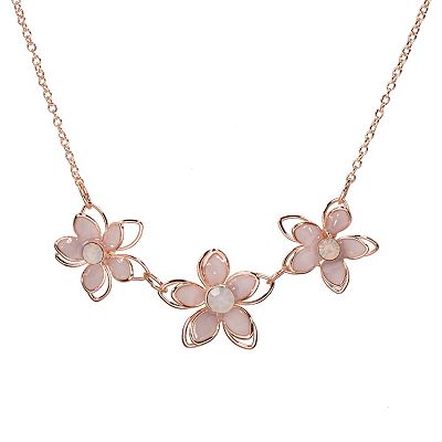 LC Lauren Conrad Rose Gold Tone Crystal Flower Statement Necklace Very well made.