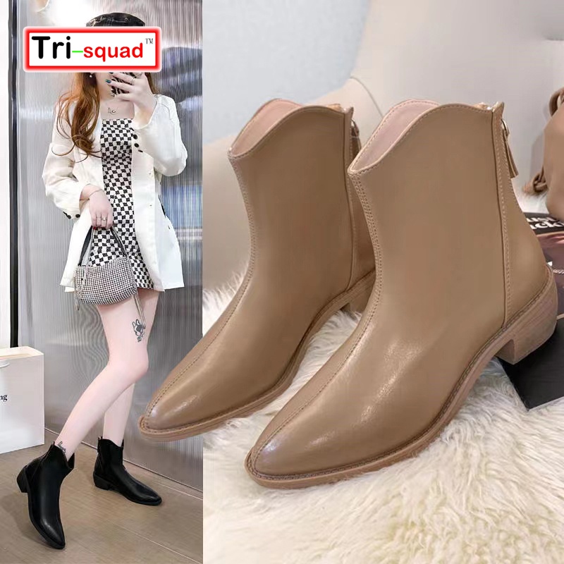 Fashion korean pointed toe leather boots with heels ankle zip riding waterproof motorcycle shoes Shopee Philippines Very well made.