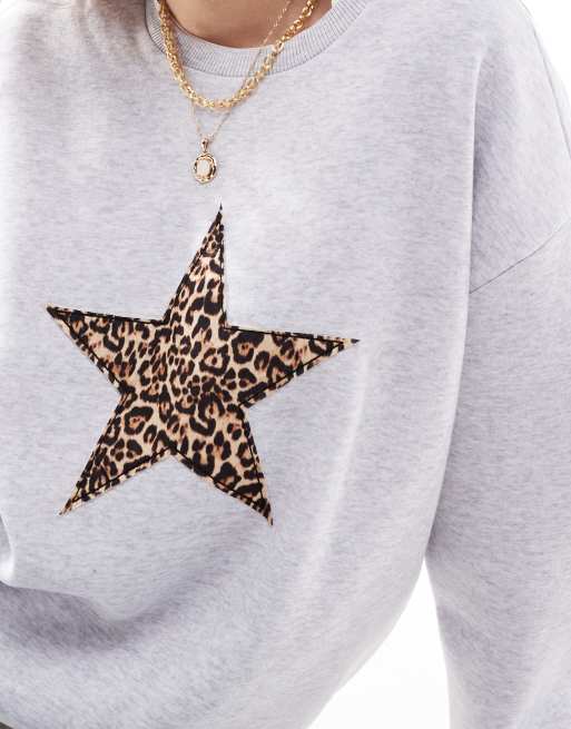 ASOS DESIGN oversized sweatshirt with leopard star applique in leopard print ASOS Very well made.