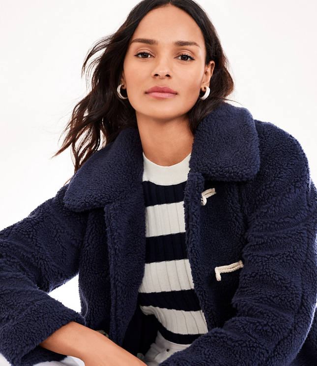 Loft Outlet Cozy Up Sherpa Quarter Button Jacket White L Large C79160 Very well made.