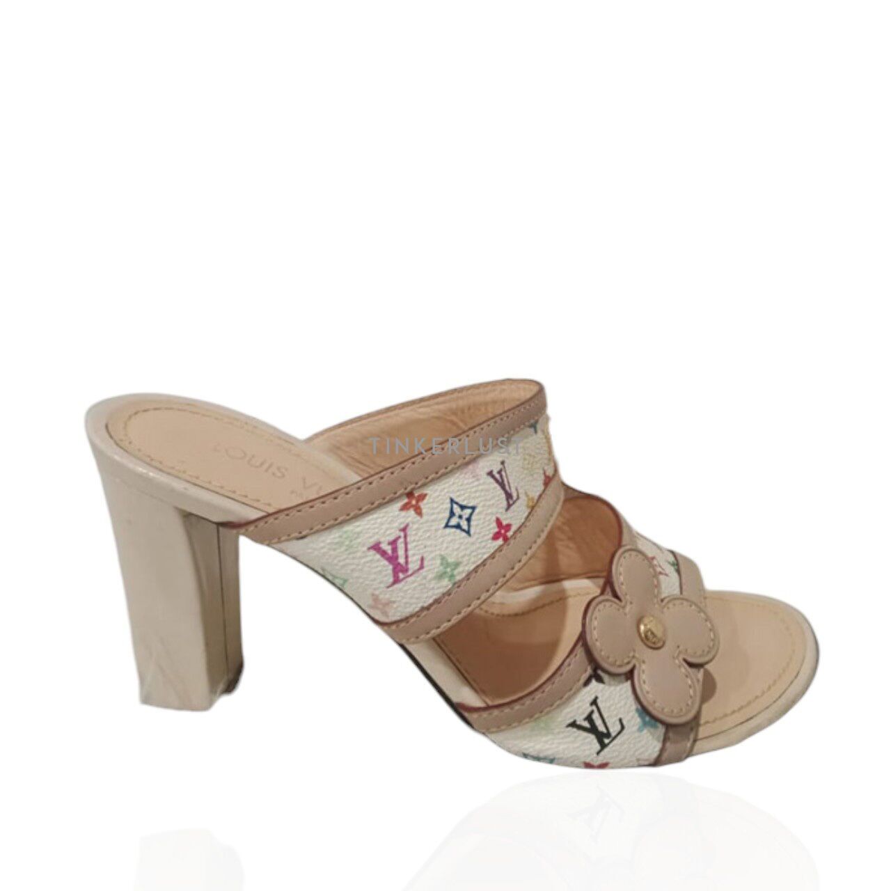 sepatu heels Louis Vuitton Open Toe White Multicolor Monogram Heels Tinkerlust Very well made.