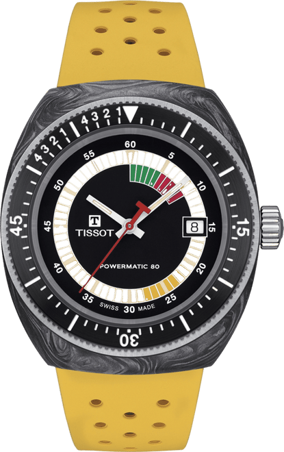 Tissot Men s Swiss Automatic Sideral S Yellow Perforated Rubber Strap Watch 41mm Macy s Very well made.