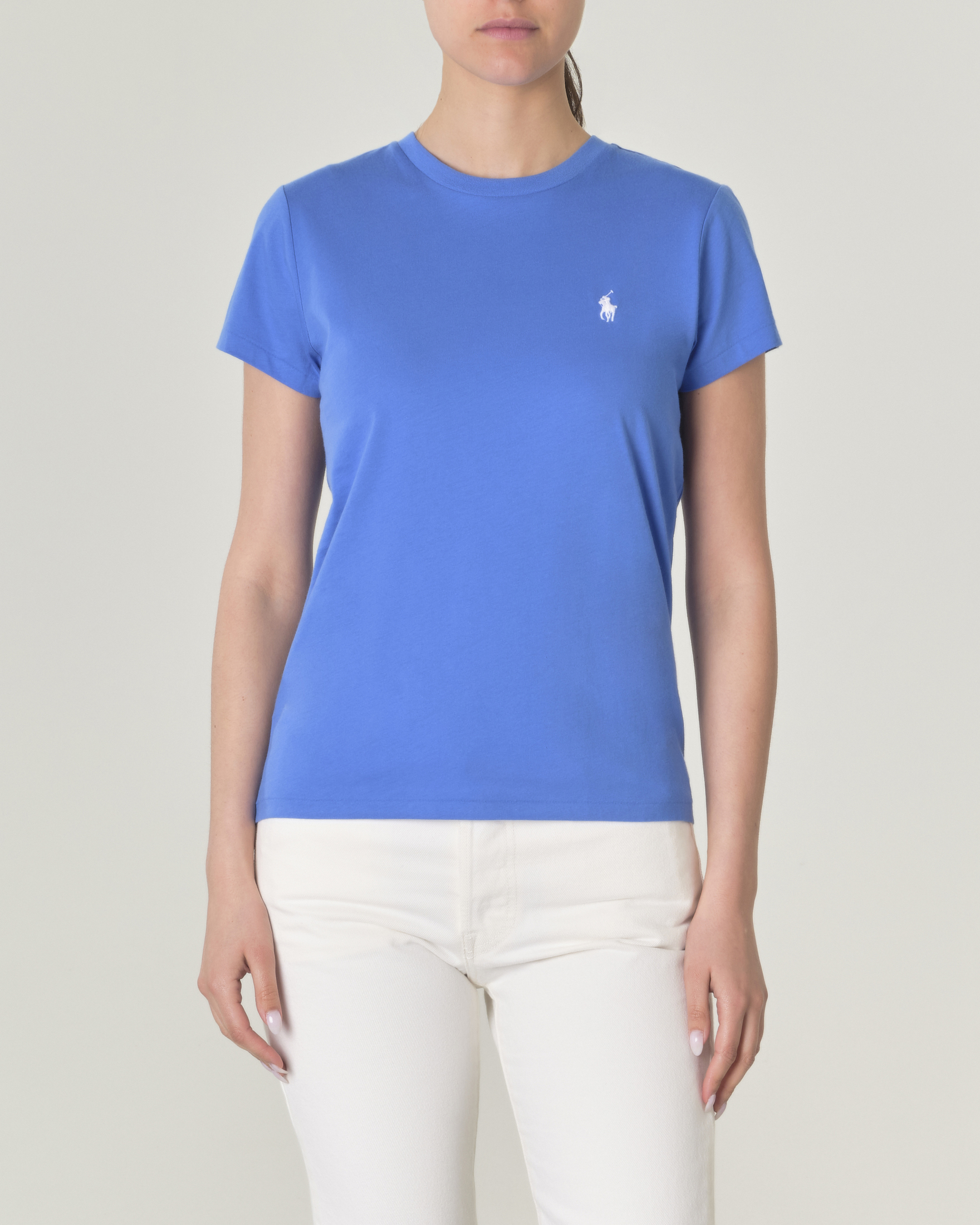 T shirt blu China in cotone a maniche corte con logo bianco ricamato sul petto Very well made.