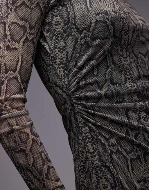 Mango mesh ruched side snake print midi dress in grey ASOS Very well made.