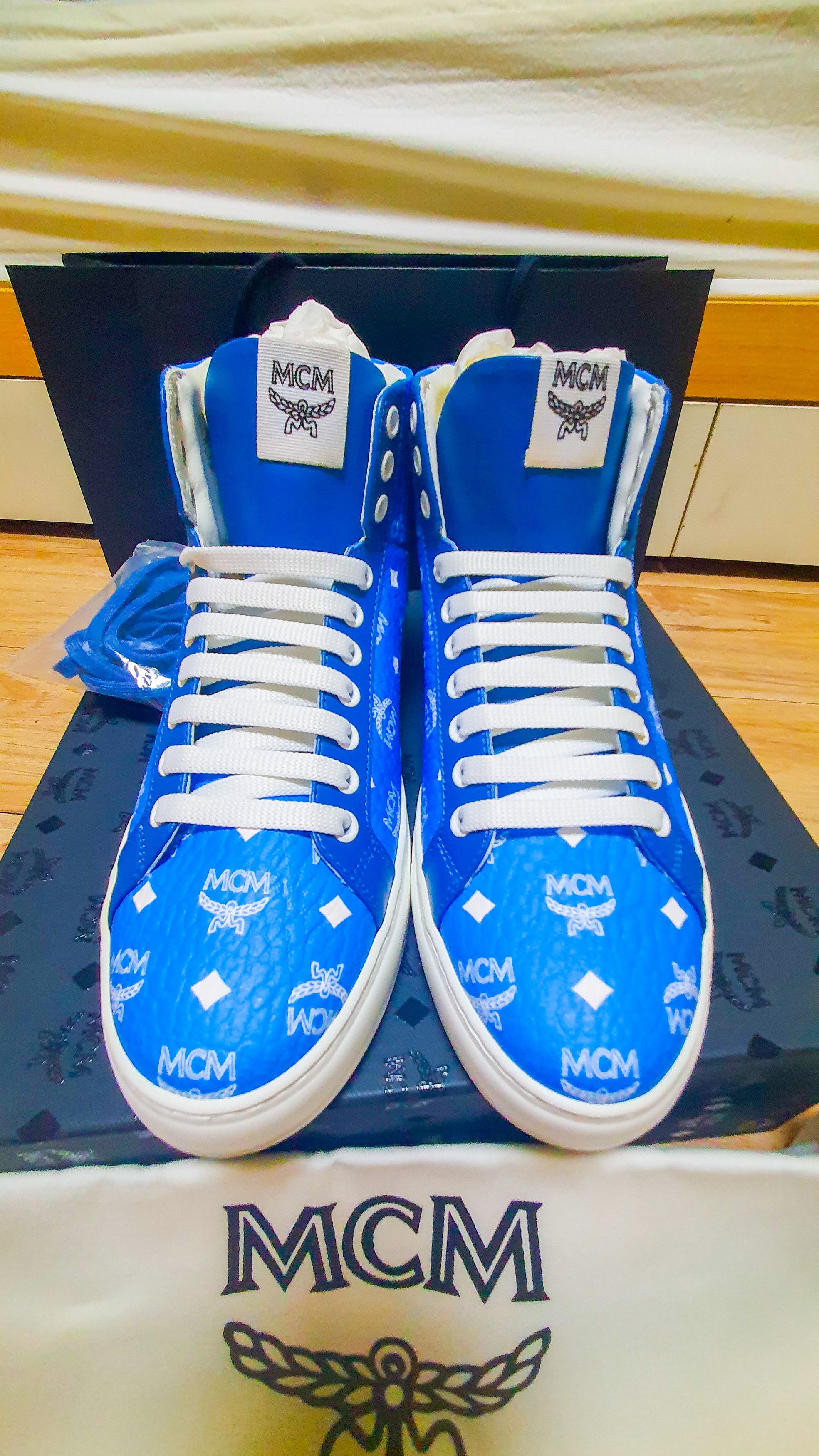 MCM MCM Blue Visetos high top shoes Grailed Very well made.