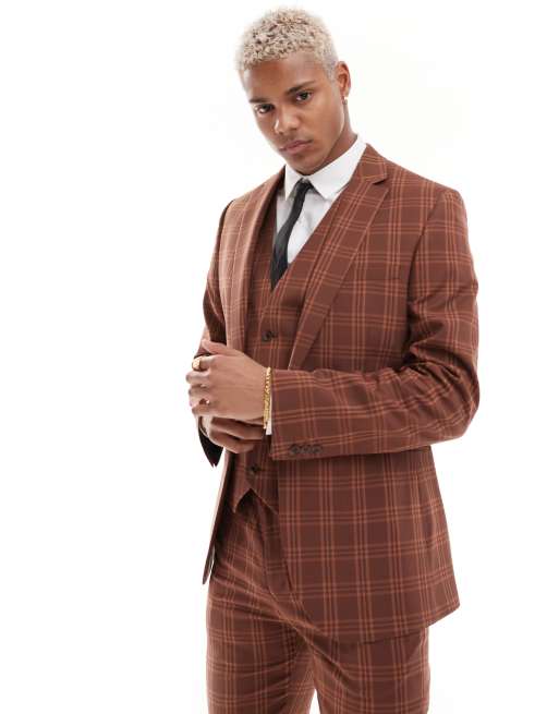Skinny Suit Check Tan Brown Spin Shop Now FOCUS Menswear Very well made.