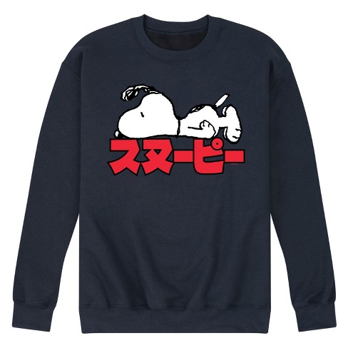 Men s Peanuts Snoopy Kanji Graphic Fleece Sweatshirt Navy Medium Target Very well made.