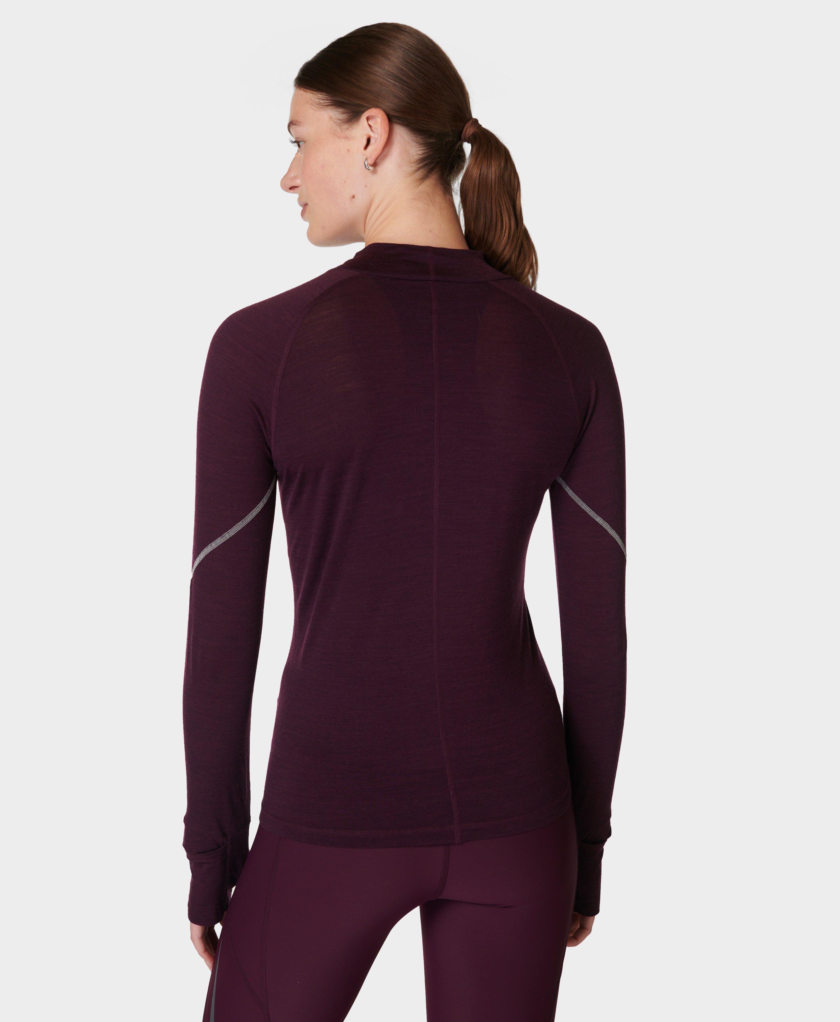 Infinity Merino Long Sleeve Running Top Midnight Cherry Purple Women s Base Layers Long Sleeve Tops Sweaty Betty Very well made.