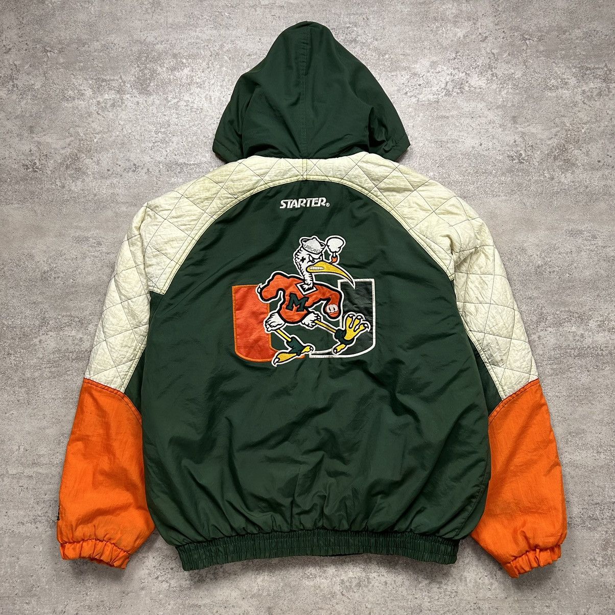 90s Starter Miami Hurricanes NCAA Jacket Green Orange M PopeVintage Very well made.