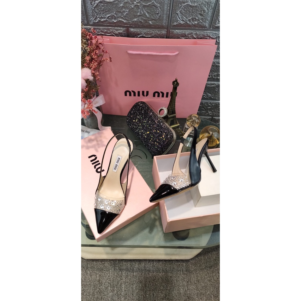 COD MIU MIU Pointed Toe Rhinestone Shiny Diamond High Heels Shoes Woman Shopee Malaysia Very well made.