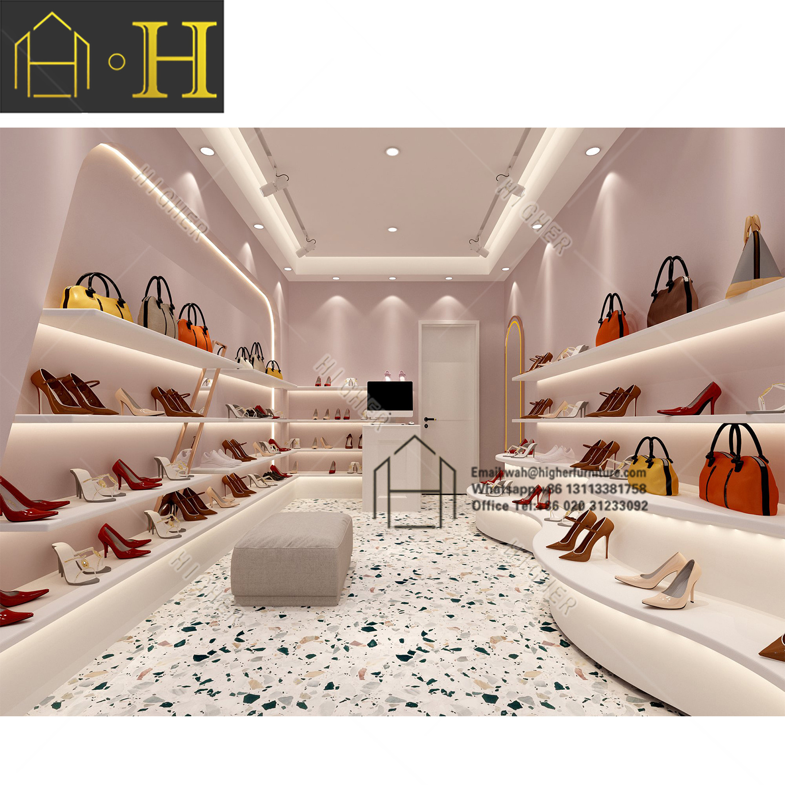 Customized modern shoes bag shop decoration handbag shop display shoe wall display cabinet BestSuppliers Very well made.