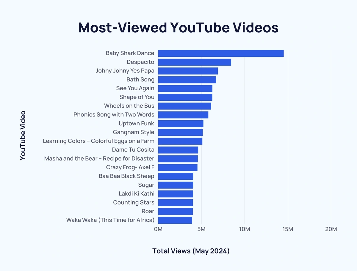 The 20 most viewed videos on YouTube of all time in 2024 Very well made.