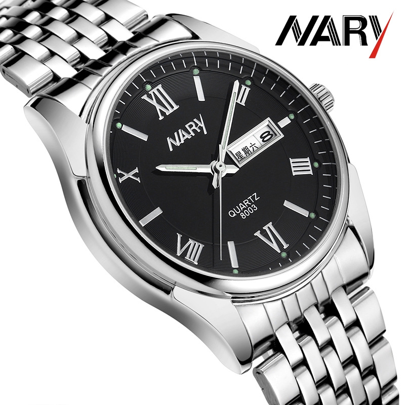 NARY Fashion Men s Watches Luxury Dual Date Quartz Watch Stainless Steel Luminous Calendar Business Waterproof Wristwatches Relo for Men 8003 Shopee Philippines Very well made.