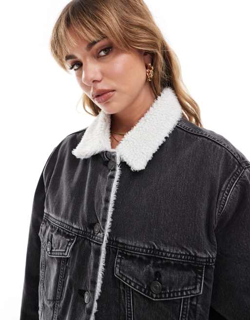 ASOS DESIGN denim borg jacket in washed black ASOS Very well made.
