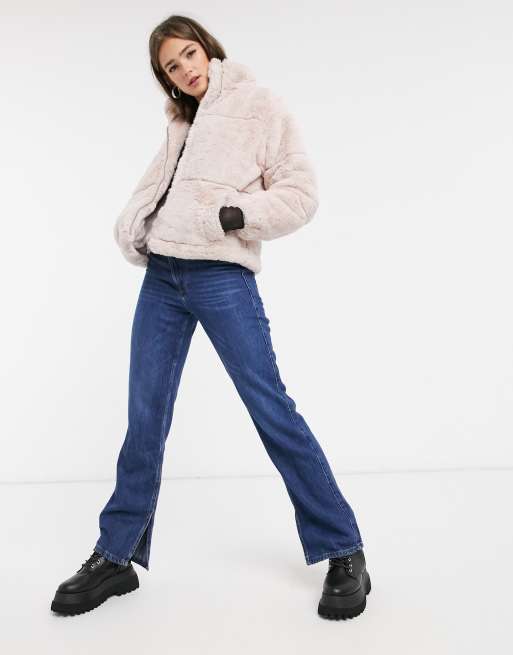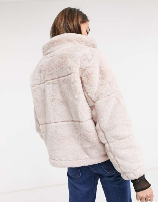 New Look faux fur stand neck jacket in pale pink ASOS Very well made.