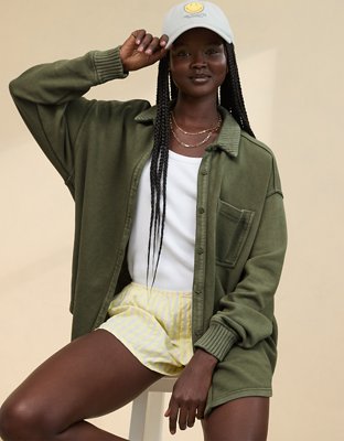 Aerie Lumberjane Fleece Shirt Women s Olive Fun L Very well made.