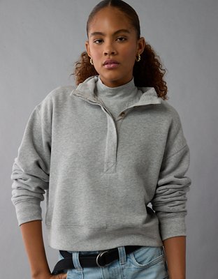 AE Cropped Henley Fleece Sweatshirt Very well made.