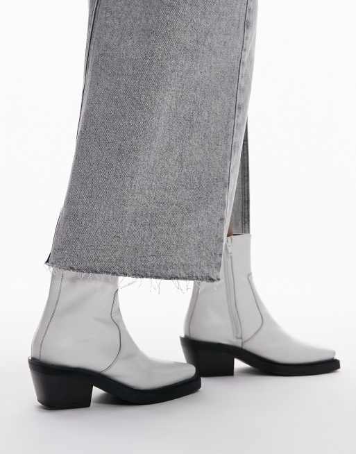 Topshop Lara Leather Western Style Ankle Boot in White lizard Neutral Very well made.